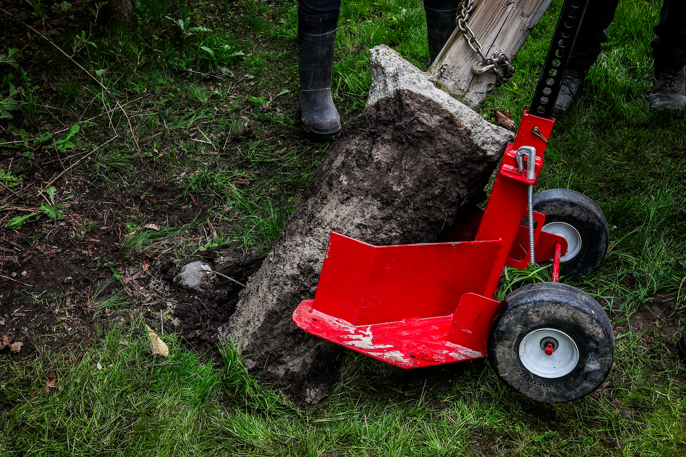 Remove the Post: Once the post is lifted, carefully roll the Big Red Post Puller and the attached post with its concrete base to the desired location for disposal or reuse.