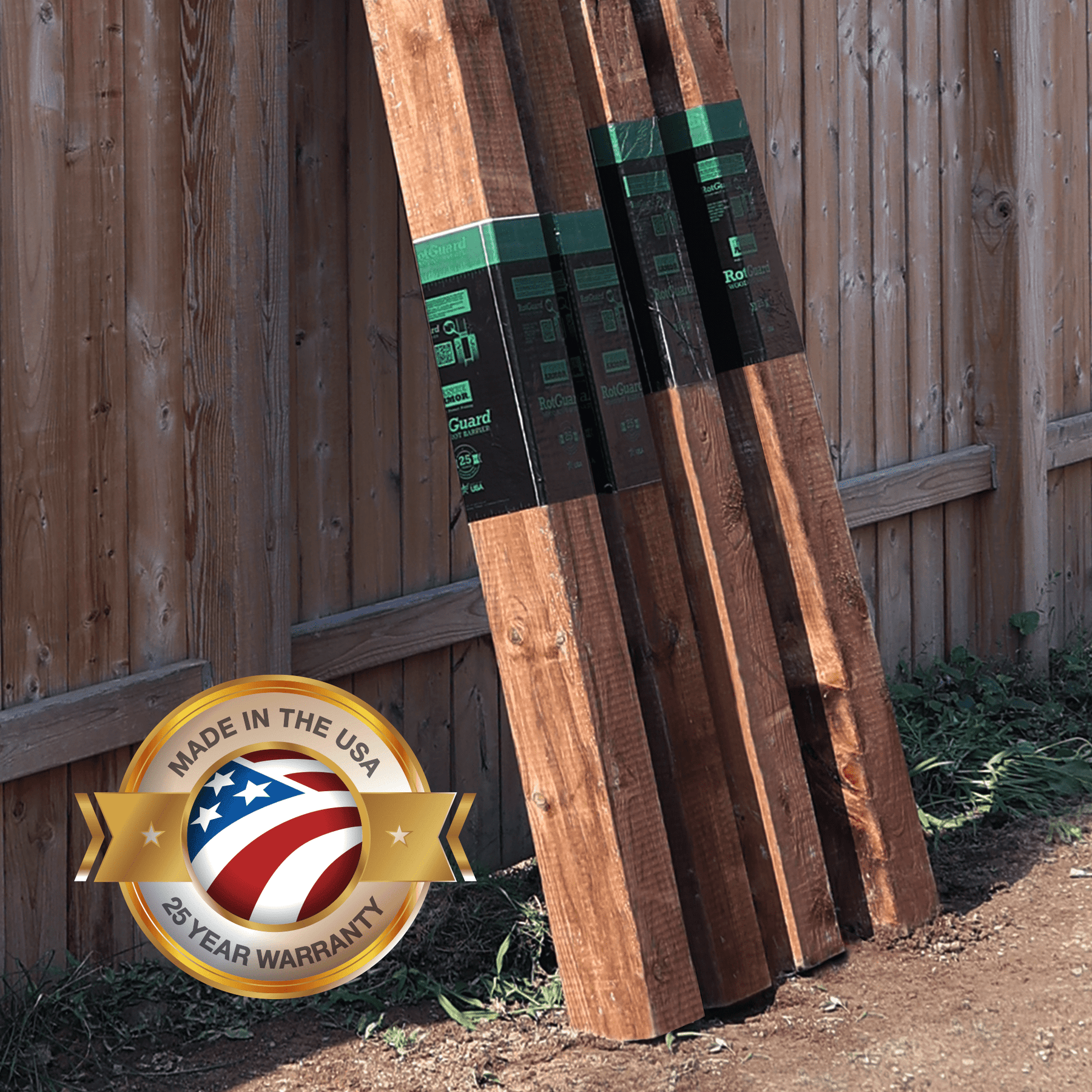 RotGuard™ offers superior protection against ground-line rot, significantly extending the lifespan of wooden posts for decades.